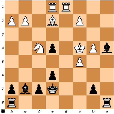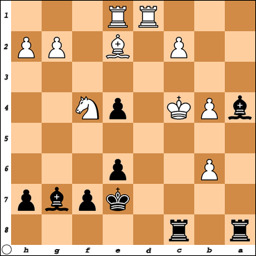 21...Ba4+ 22 Kc4 (wäre der König auf die a-Linie geflüchtet, wäre Lxc2 "Abzugsmatt" gewesen)